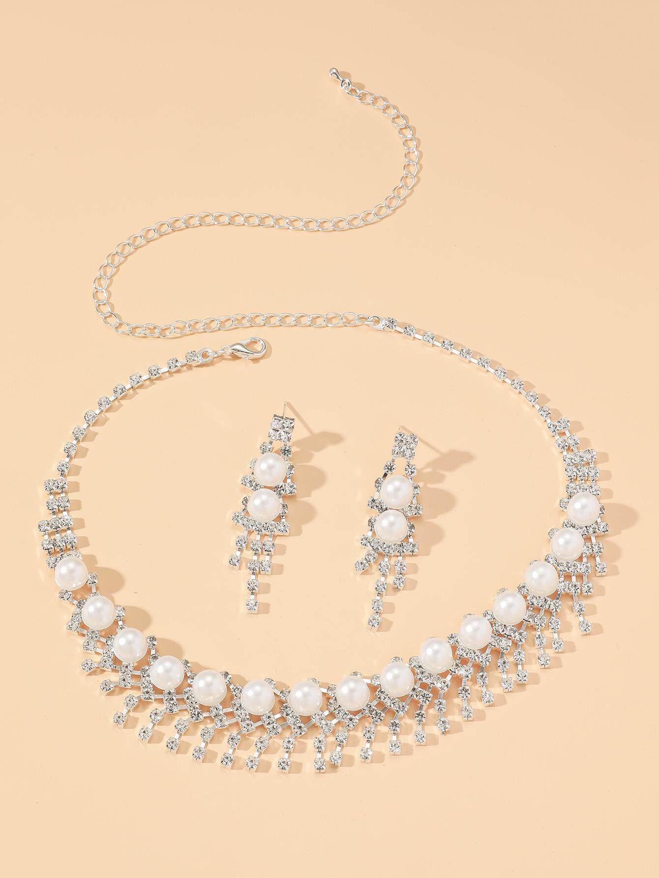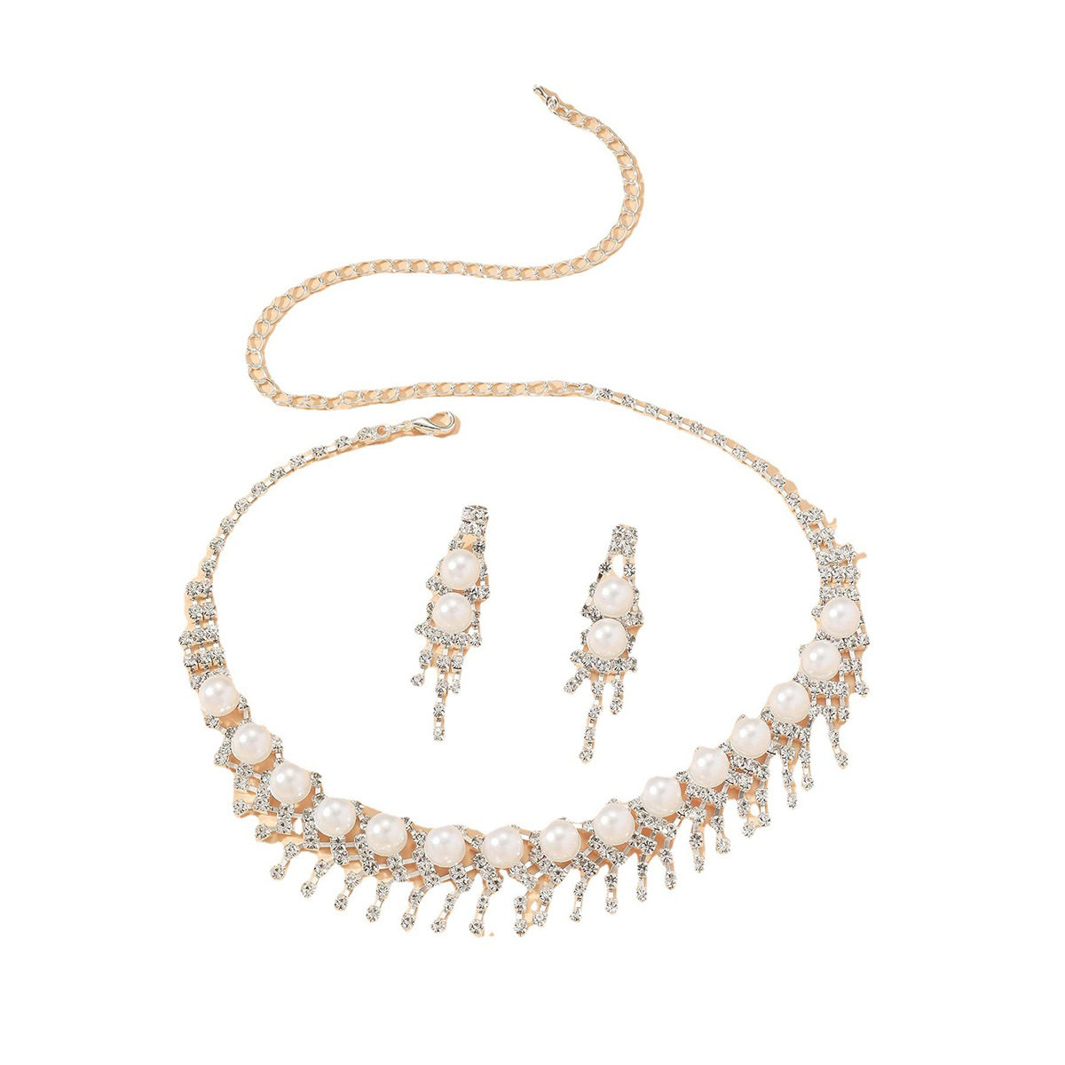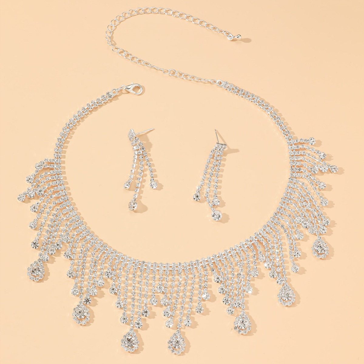 欧美热销新娘圆圈水钻套链婚纱配饰时尚 礼物 ol风水滴耳环项链套装