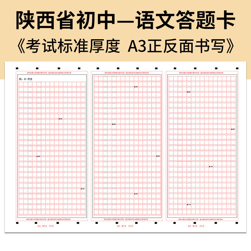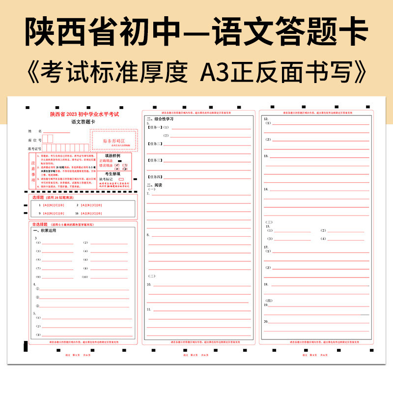 考前练手模拟 全新版 A3双面共1张 120g双胶纸 质量媲美答题纸 2023年陕西省初中学业水平考试语文答题卡