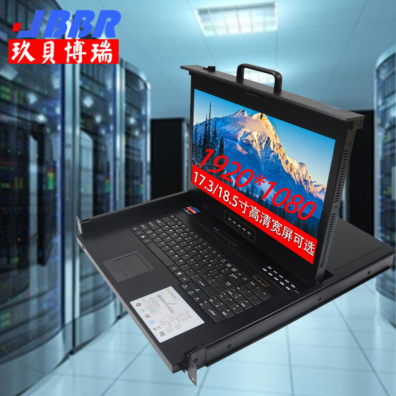 kvm切换器短款 1080机柜电脑主机服务器抽拉键盘鼠标加固1u折叠显示器 8口17.3寸高清屏幕四进一出16路vga1920