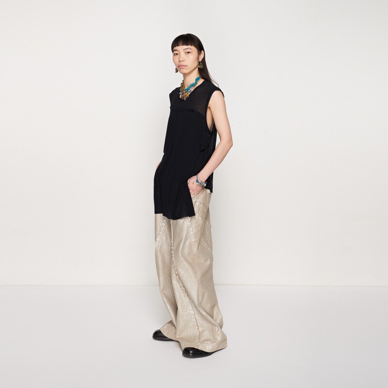 素然kwanyza 超细微透针织布侧开叉宽松马甲背心