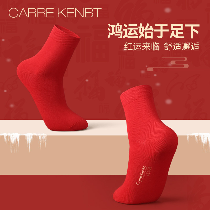 CarreKenbt情侣中筒袜男女通用属马本命年结婚礼盒装 大红色袜子男