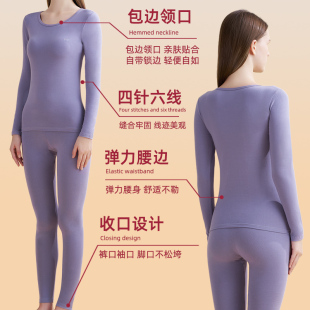 棉毛衫 猫人纯棉秋衣秋裤 全棉线衣线裤 套装 低领保暖内衣 女秋冬薄款