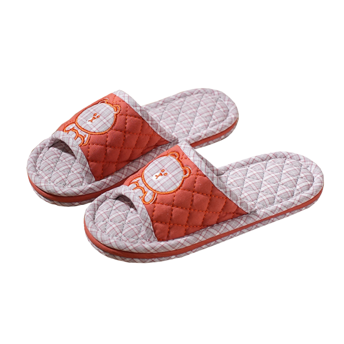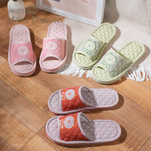 纯棉布艺卡通熊男女情侣秋冬四季 防滑软布底静音家居室内地板拖鞋