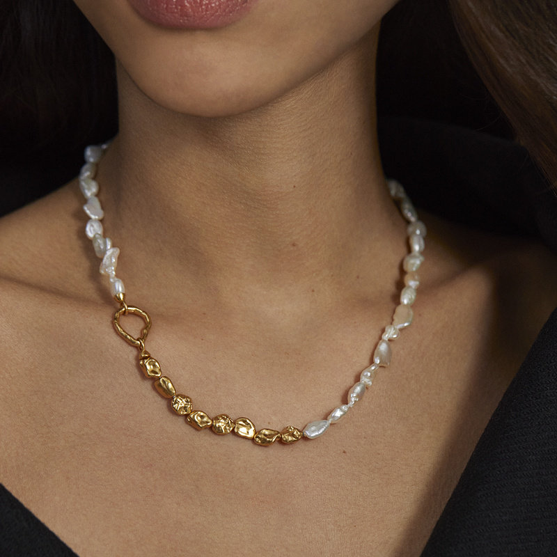 破碎珍珠项链女欧美复古气质不规则长款 毛衣链轻奢小众颈链锁骨链