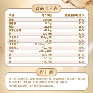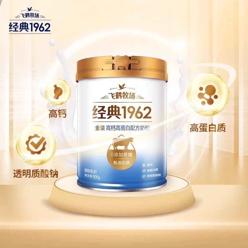 高钙高蛋白0添加蔗糖800g 飞鹤奶粉成人中老年金装 2罐 礼盒