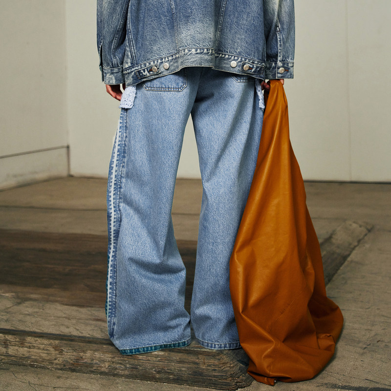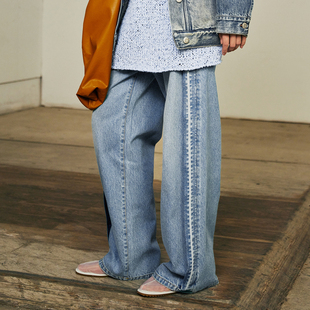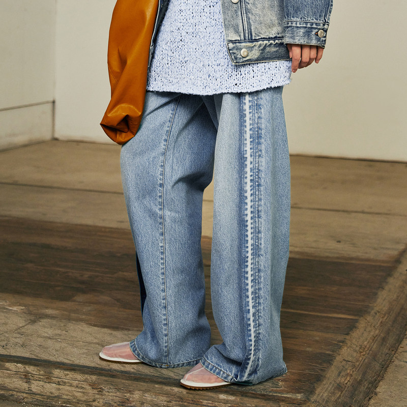 子女复古解构宽松阔腿牛仔裤 通勤水洗裤 2O2E13880 LESSxSamuel