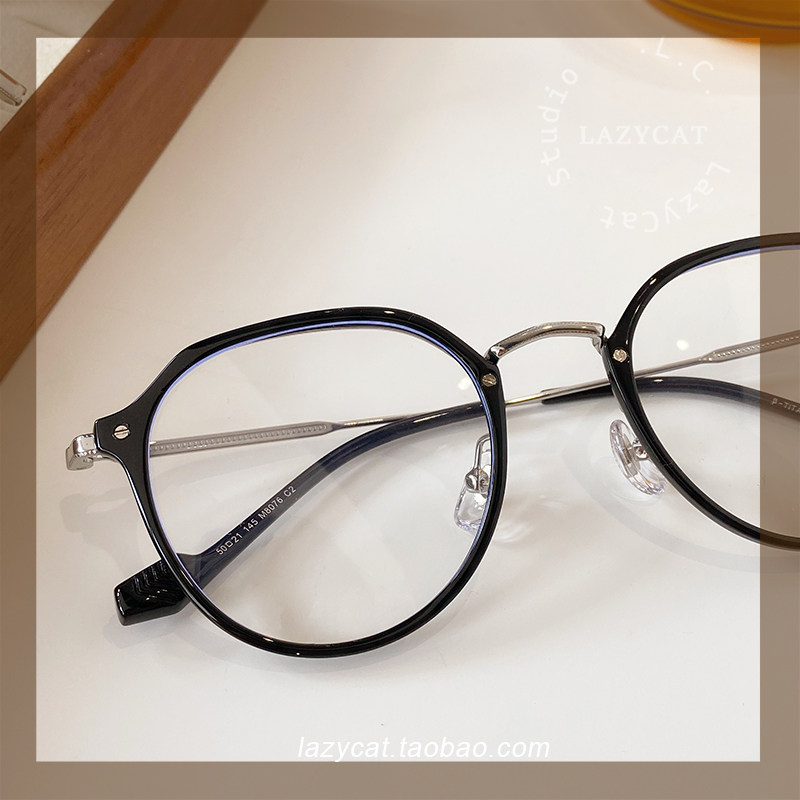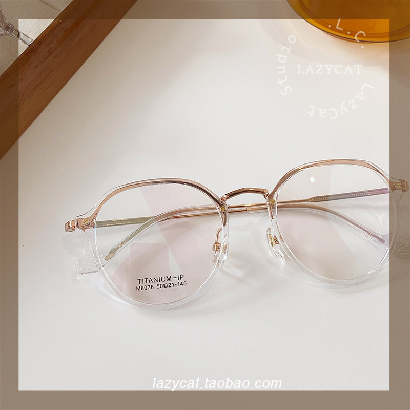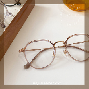51mm超轻10g钛茶色方圆形近视眼镜框女配度数素颜显脸小平光镜架
