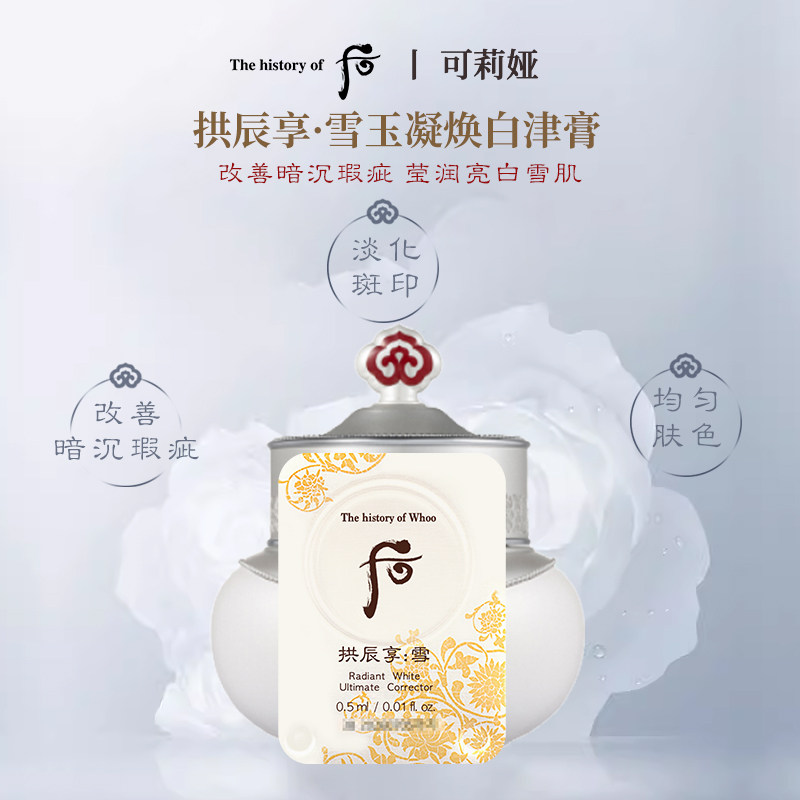 WHOO后拱辰享雪玉凝美白津膏小样0.5ml 30片改善暗沉提亮肤色淡斑