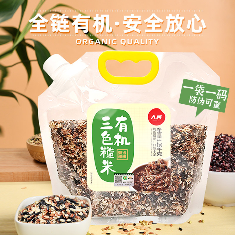 人民食品有机三色糙米1.25kg东北五谷杂粮五色糙米饭健身粗粮主食