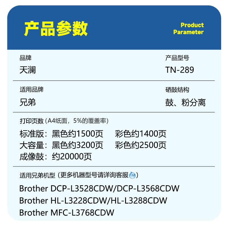 L3768 天澜适用兄弟TN289粉盒DCP L3568CDW墨粉盒MFC L3228硒鼓brother 3288CDW打印机碳粉盒 L3528CDW墨盒HL