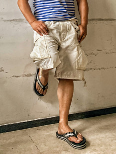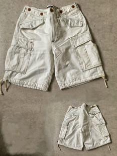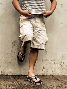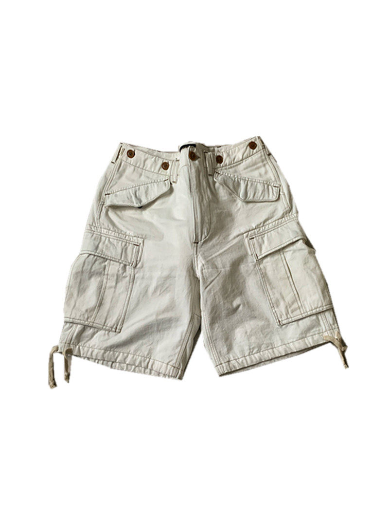 RRL风格 咔叽复古重磅防撕裂斜纹纯棉军事大兜工装 风琴袋六分短裤