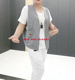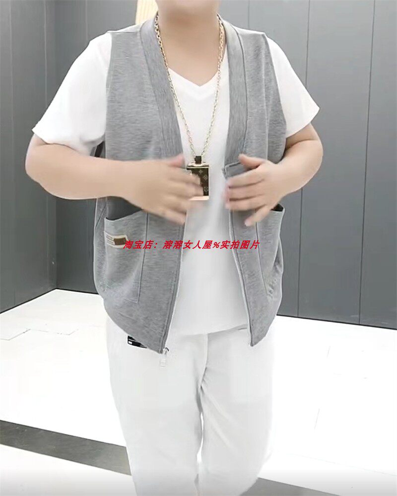 2024夏季 遮肚显瘦纯色马甲外套减龄胖妹妹潮 加肥加大带兜拉链开衫