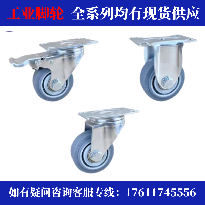 静音脚轮万向轮轮子刹车1寸1.5寸2寸3橡胶定向家具推车万象转向轮