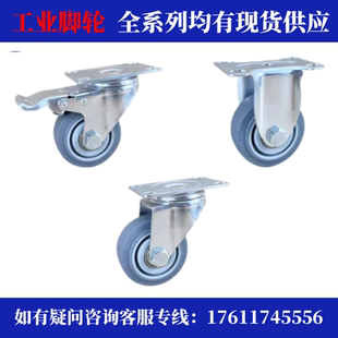 3寸万向轮脚轮滑轮定向轮带刹车静音小推车轮子轱辘滚轮 1.5