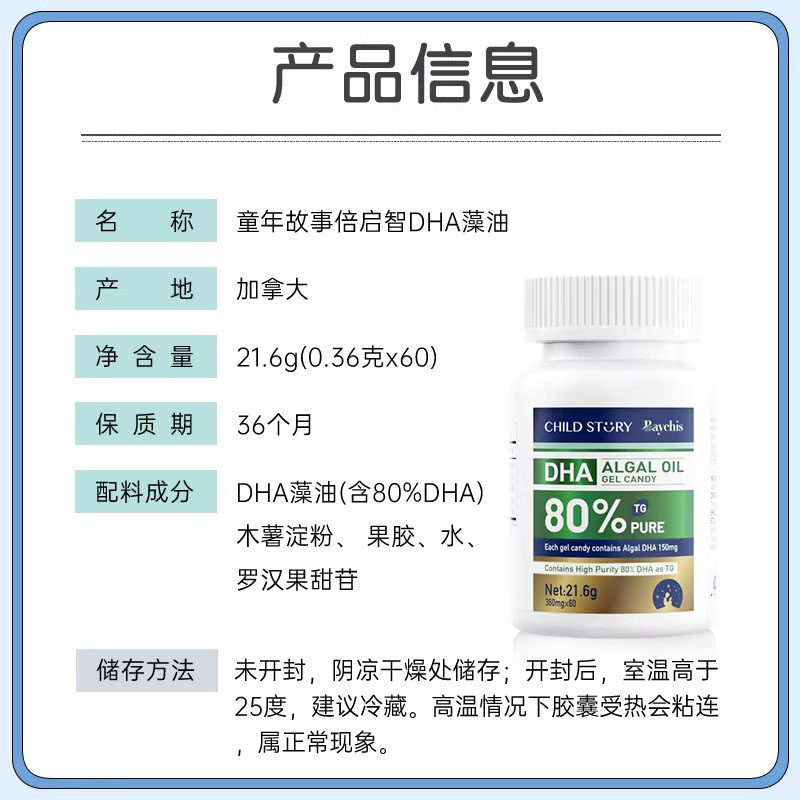 童年时光childlife婴幼儿dha藻油敏宝专用儿童DHA6月 可吃非鱼油