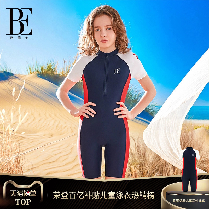 BE范德安2026 儿童连体泳衣平角女童防晒抗氯亲肤透气游泳中大童