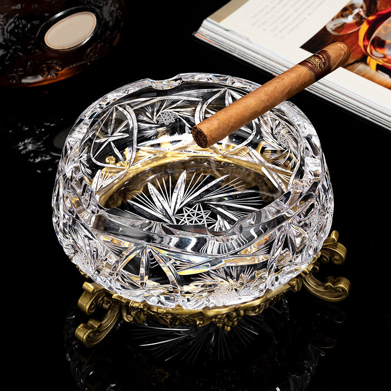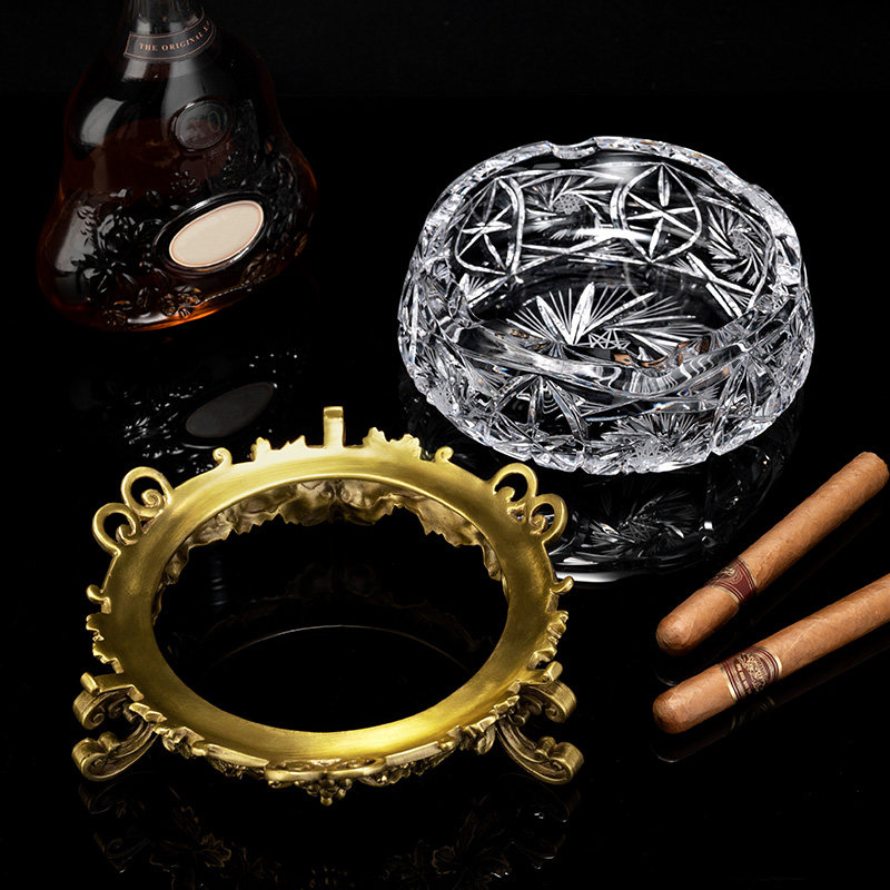 CIGARLOONG茄龙雪茄烟灰缸欧式 23EP9 玻璃烟缸镶铜手工制作CLG
