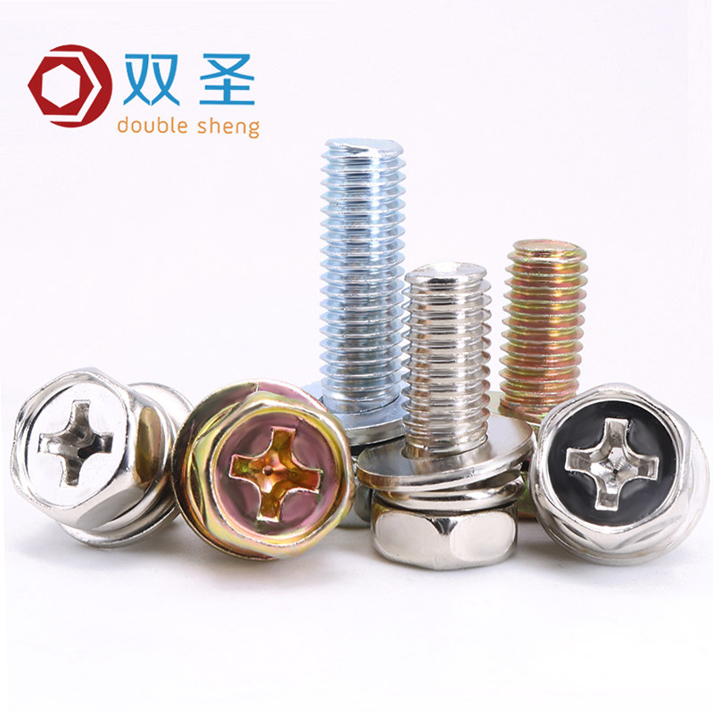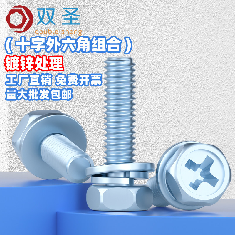 镀锌十字带垫六角法兰螺丝平底光面碳钢螺栓毫米电动车M4M5M6M8厘