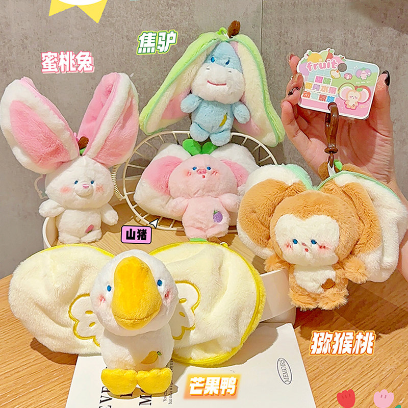 可爱藏在水果里 兔子小猪钥匙扣挂件小号玩偶书包背包布娃娃挂饰