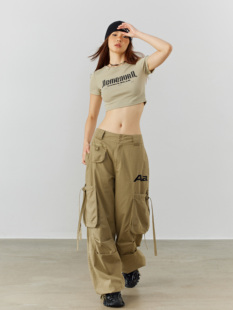 子设计感宽松直筒休闲裤 ACMEAURA美式 辣妹爵士舞街舞裤 裤 潮牌工装