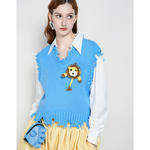 古早千金风甜美减龄露肩碎花毛衣女设计感针织衫 岛 套装 小雨