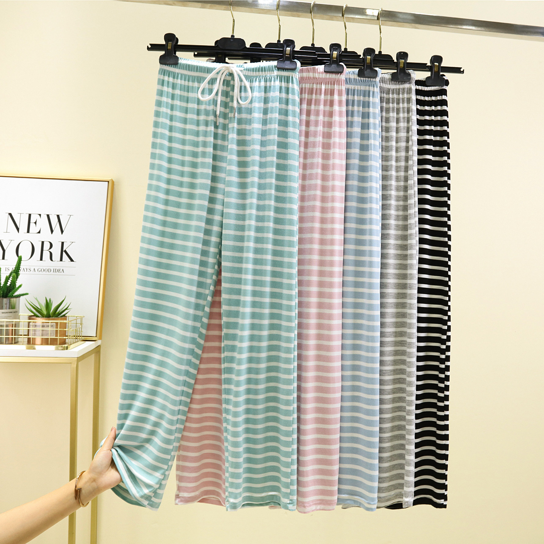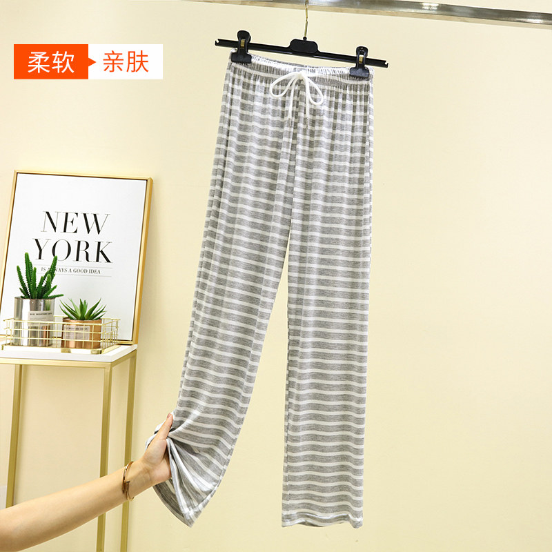凉凉裤 薄款 休闲居家睡裤 大码 莫代尔条纹阔腿裤 百搭宽松长裤 夏季