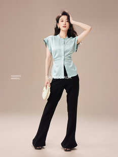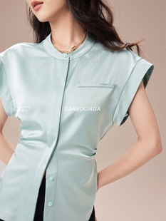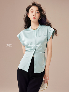 气质内搭女叠穿背心打底百搭 衬衫 法式 V领木耳花边丝滑缎面无袖