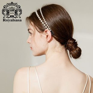皇家莎莎头饰发卡森系仙女超仙简约气质外出头箍压发双层珍珠发箍