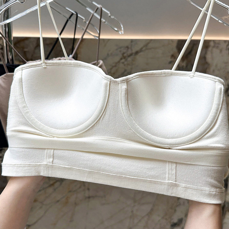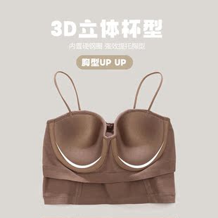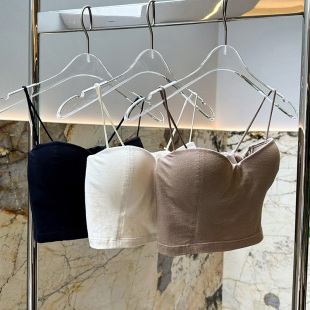 性感外穿针织棉拉吊带懒人带胸垫二合一钢圈稳定承托文胸背心女夏