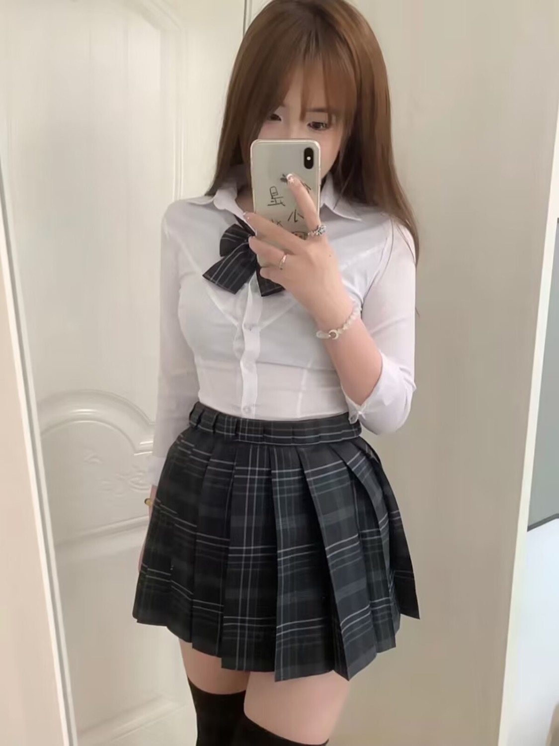 樱桃33年JK制服套装 甜辣妹两件套 学院风校供格裙纯欲白色收腰衬衫