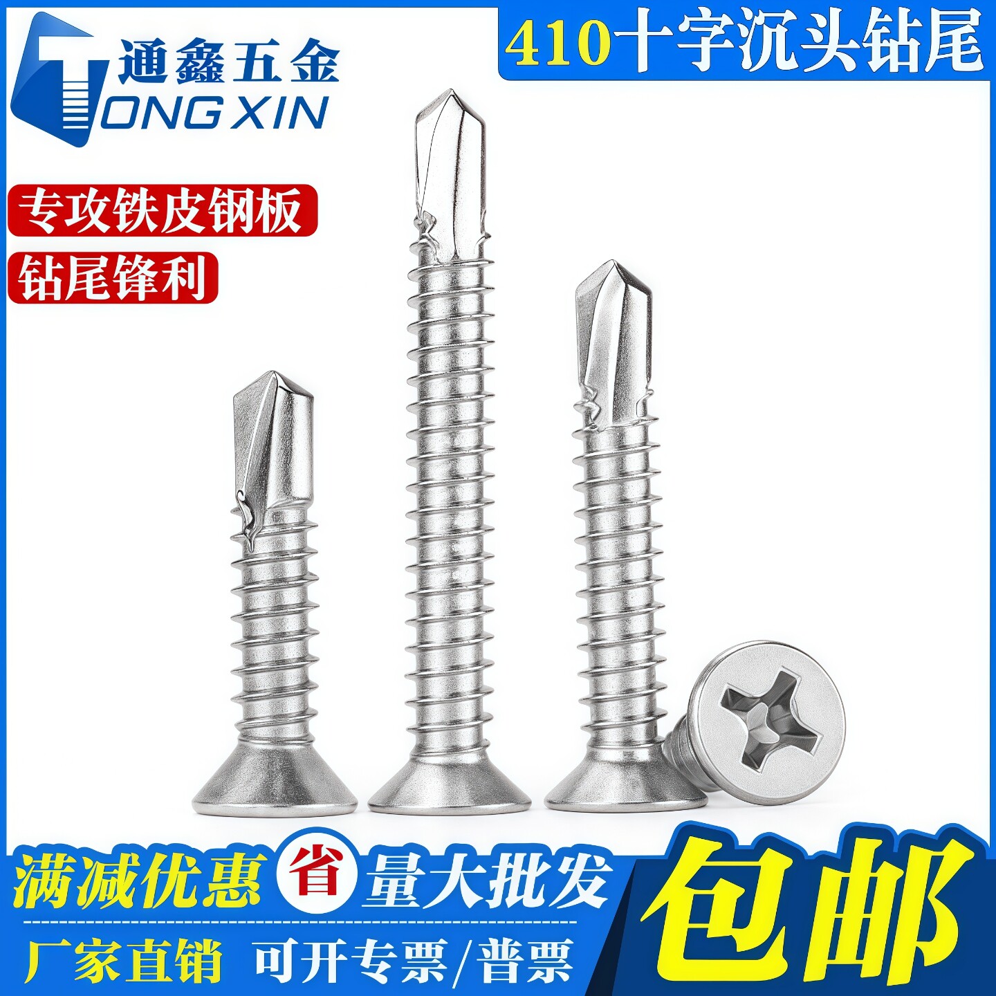 410不锈钢十字沉头钻尾螺丝十字平头螺钉自攻自钻燕尾M3.5 M6.3