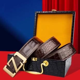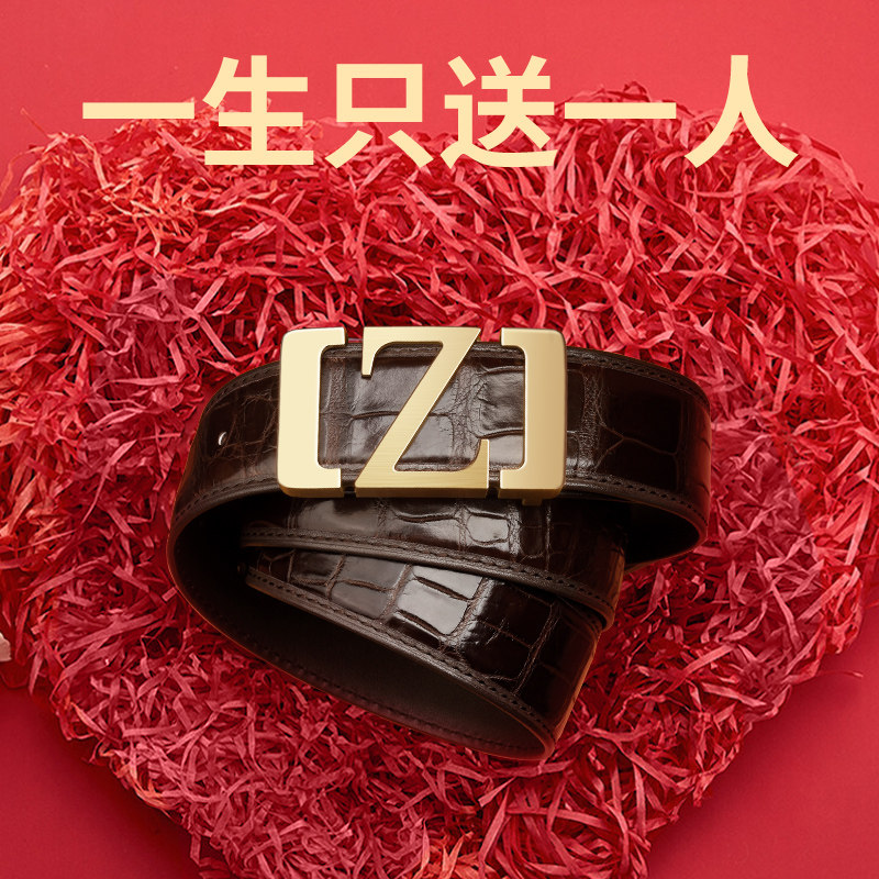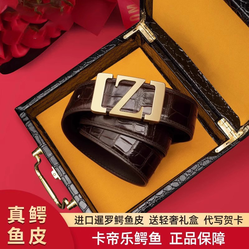 腰带 高档奢华商务字母裤 卡帝乐鳄鱼男士 皮带鳄鱼皮真皮平滑扣正品
