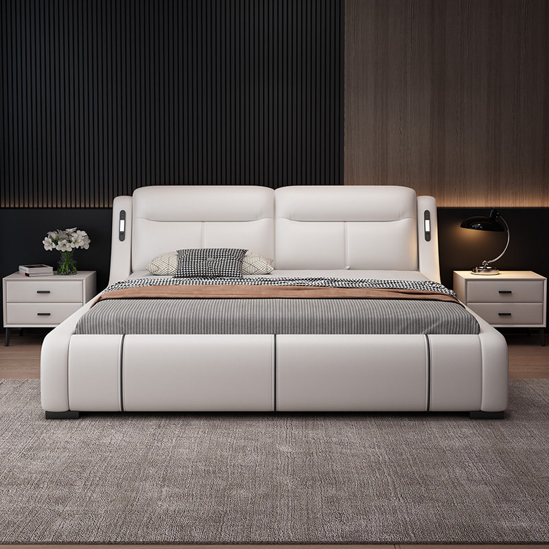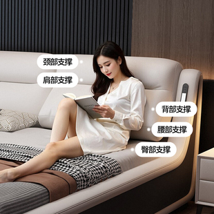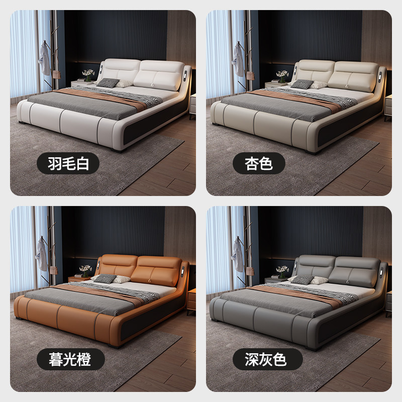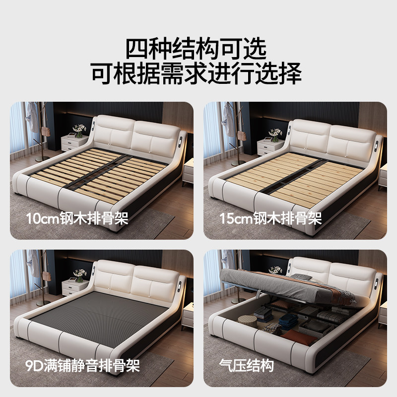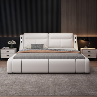 政府补贴2025年新款 多功能真皮床现代简约双人床主卧2米x2米2大床