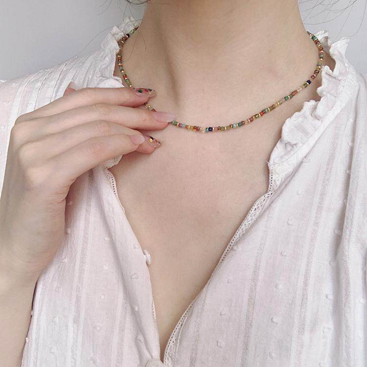 Timee恬觅 天然碧玺南红绿松青金石琉璃米珠毛衣链项链 斑斓