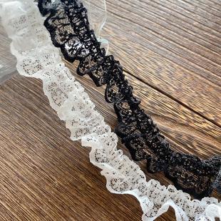 2.5厘米宽黑白色雷丝花边辅料高档弹力布料装 饰衣服裙摆窗帘材料