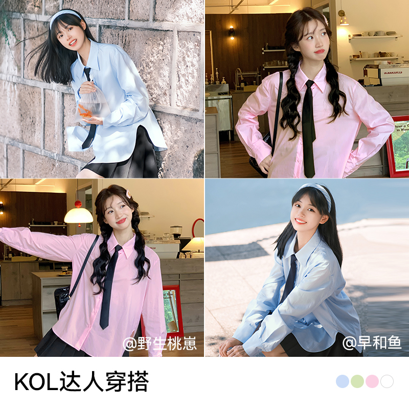 送领带 小衫 诗凡黎学院马卡龙长袖 2024秋新款 薄荷曼波衬衣 衬衫
