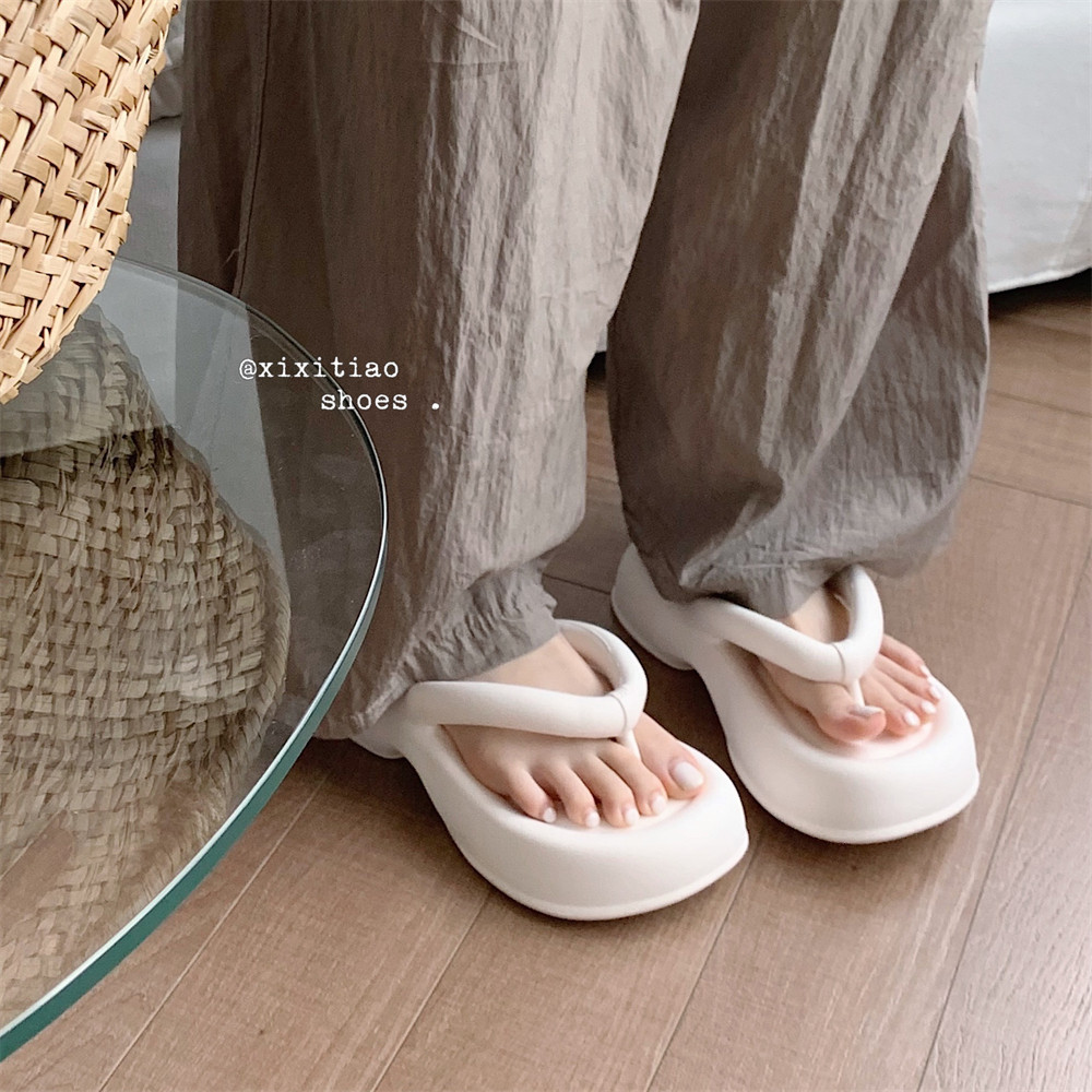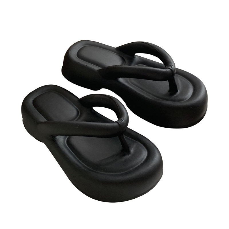 外穿百搭黑色夹脚沙滩鞋 细细条 踩屎感eva软厚底松糕人字拖女夏季