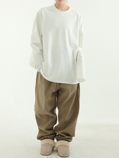 浅色糯米休闲裤 子 女秋冬加绒胖妹妹mm高腰宽松显瘦梨型身材阔腿裤