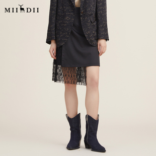 谜底2022秋新款 不规划拼接压褶蕾丝A型半身裙223MB1037