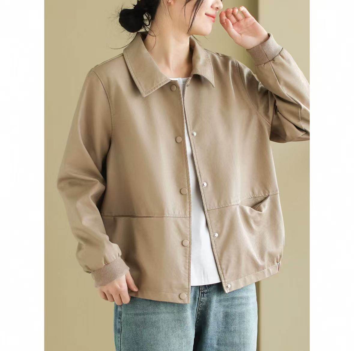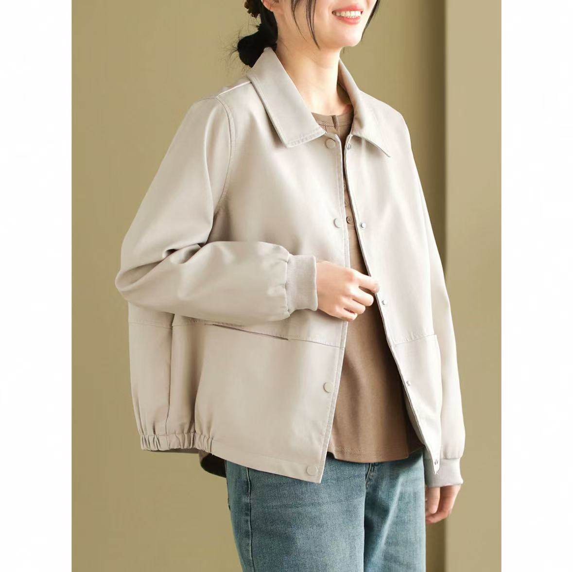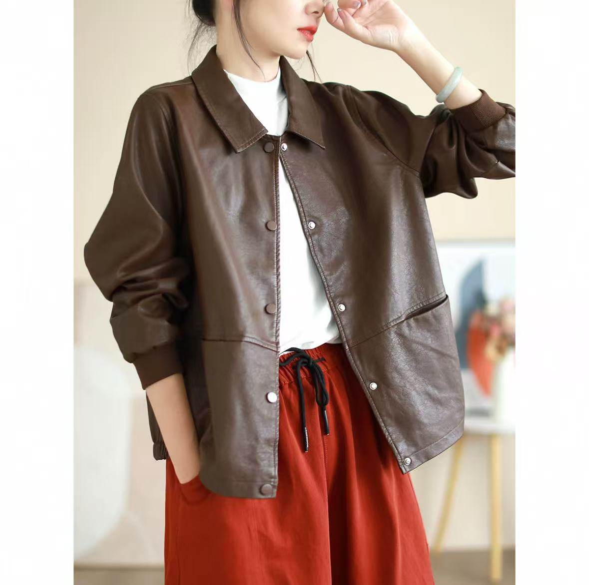 高级感甜酷短款 新款 夹克外套 口袋复古棕色皮衣女2025年秋季 妖精