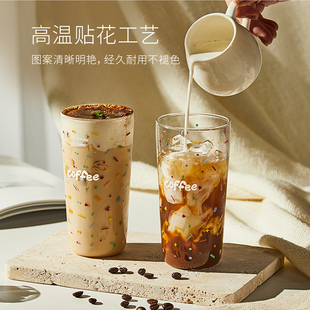 富光玻璃杯水杯女生高颜值高硼硅咖啡杯早餐杯刻度暖手杯随手杯子