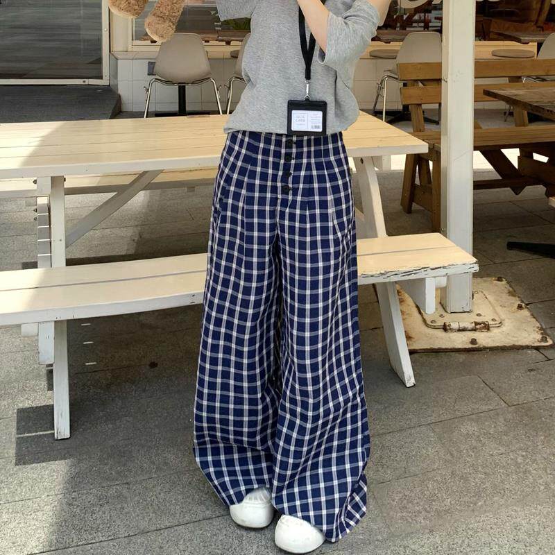 2025爆款 百搭舒适宽松高腰显瘦阔腿休闲裤 露思同款 春季 格子裤 MJB