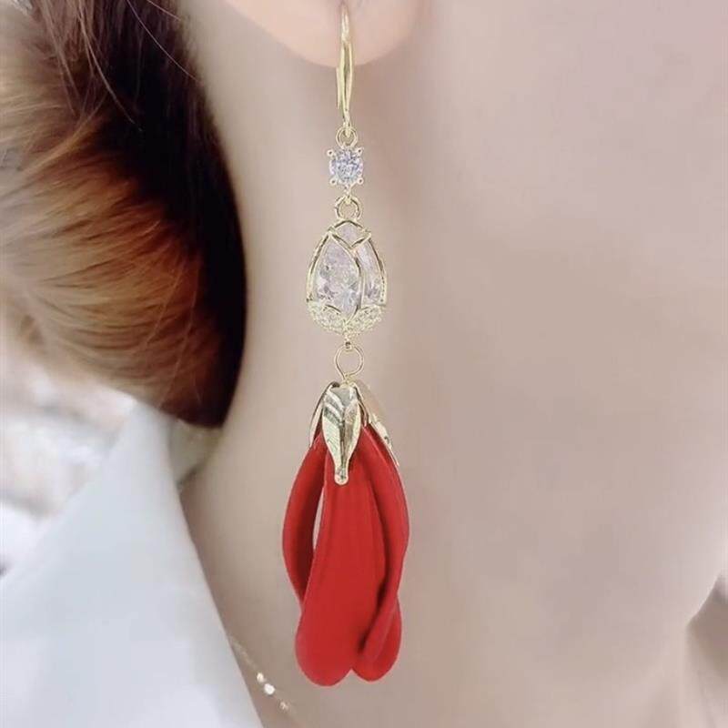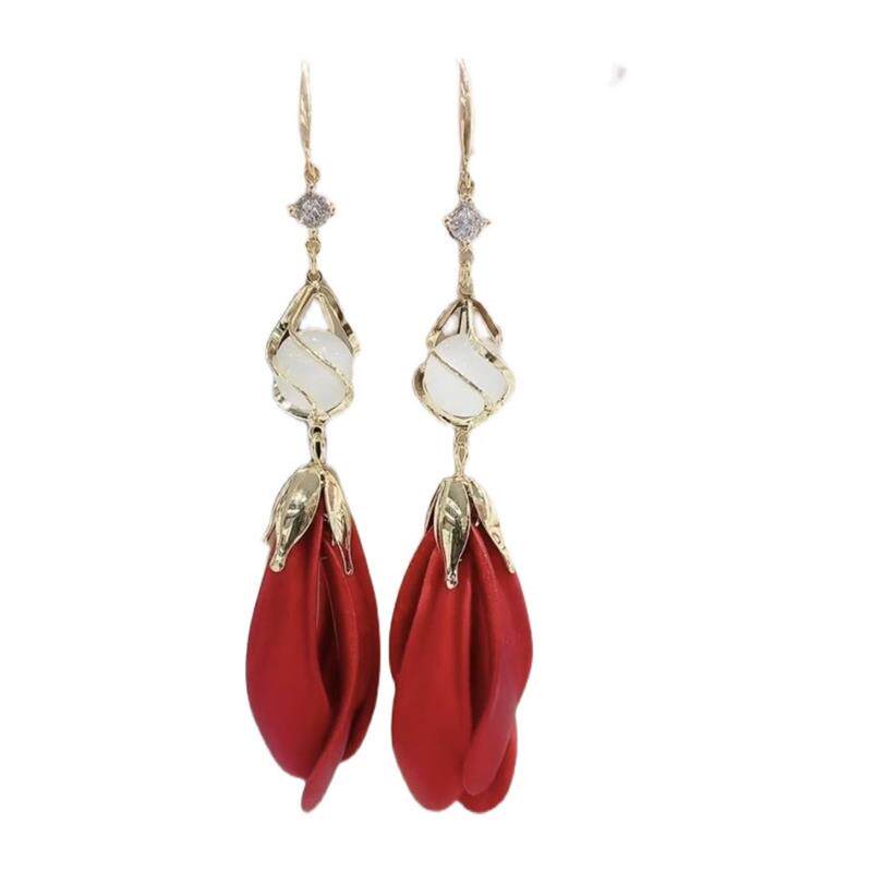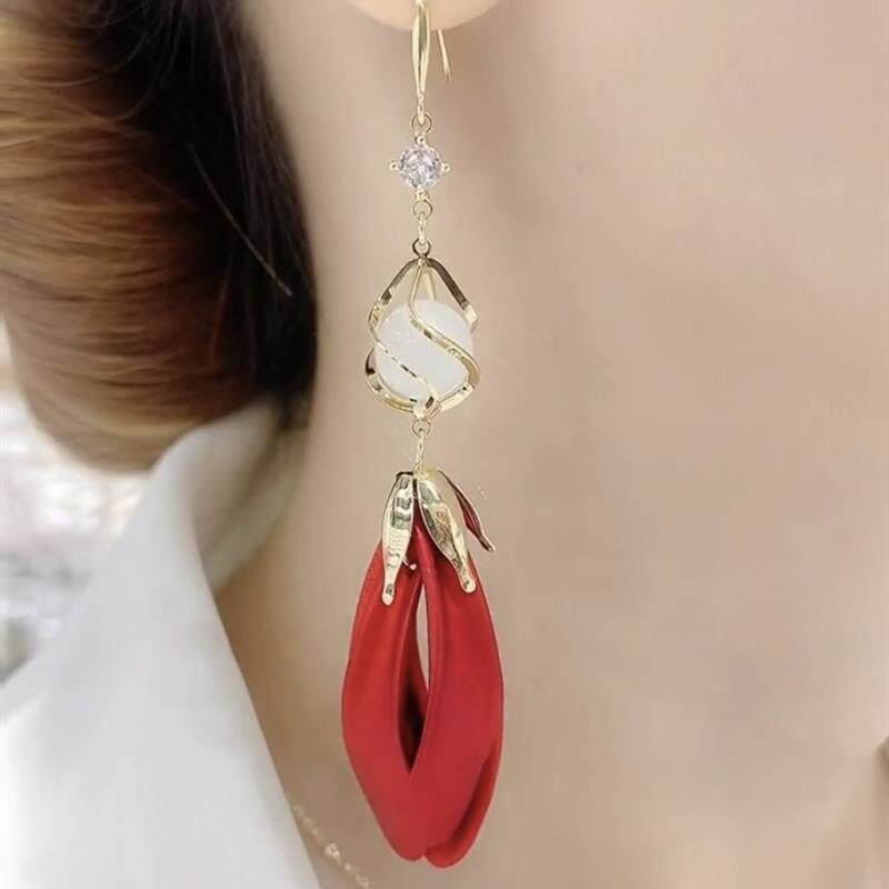 猫眼石郁金香花瓣流苏耳环气质百搭超仙款 2024新款 挂钩耳环时尚