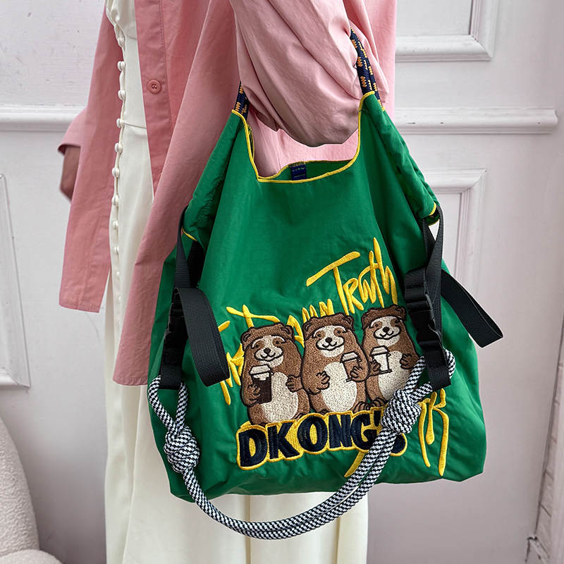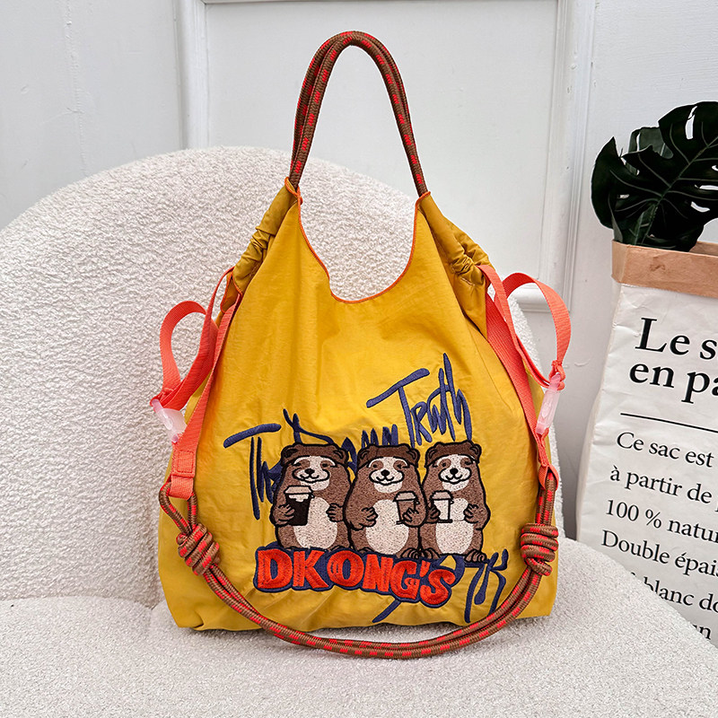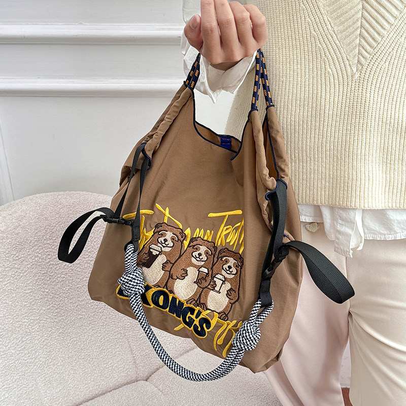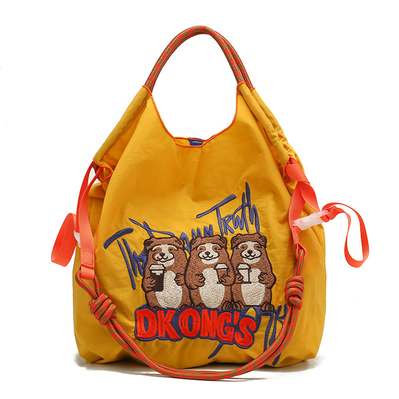 自制小众ball 刺绣购物袋大容量单肩斜挎包女包 chain高圆圆同款