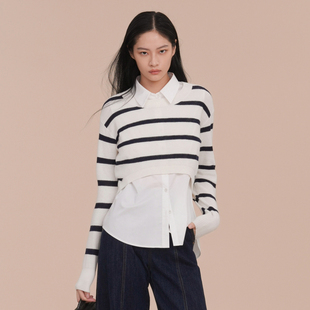 毛衫 XG雪歌经典 两件套长袖 2025春新款 女XK111019B351 条纹毛针织衫