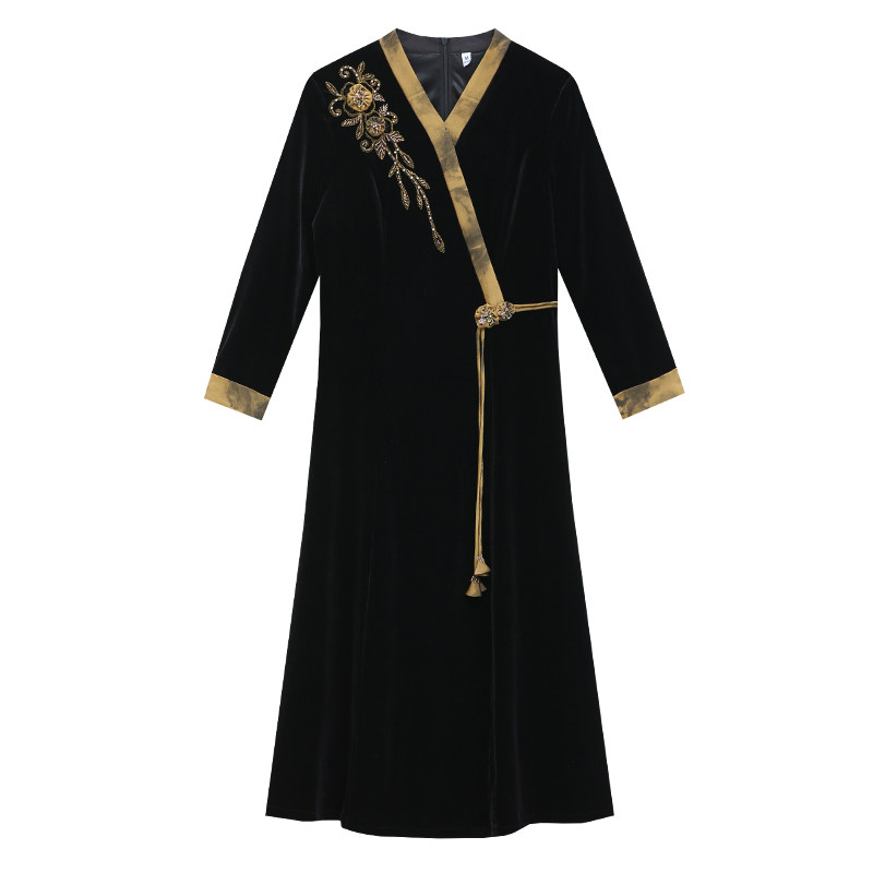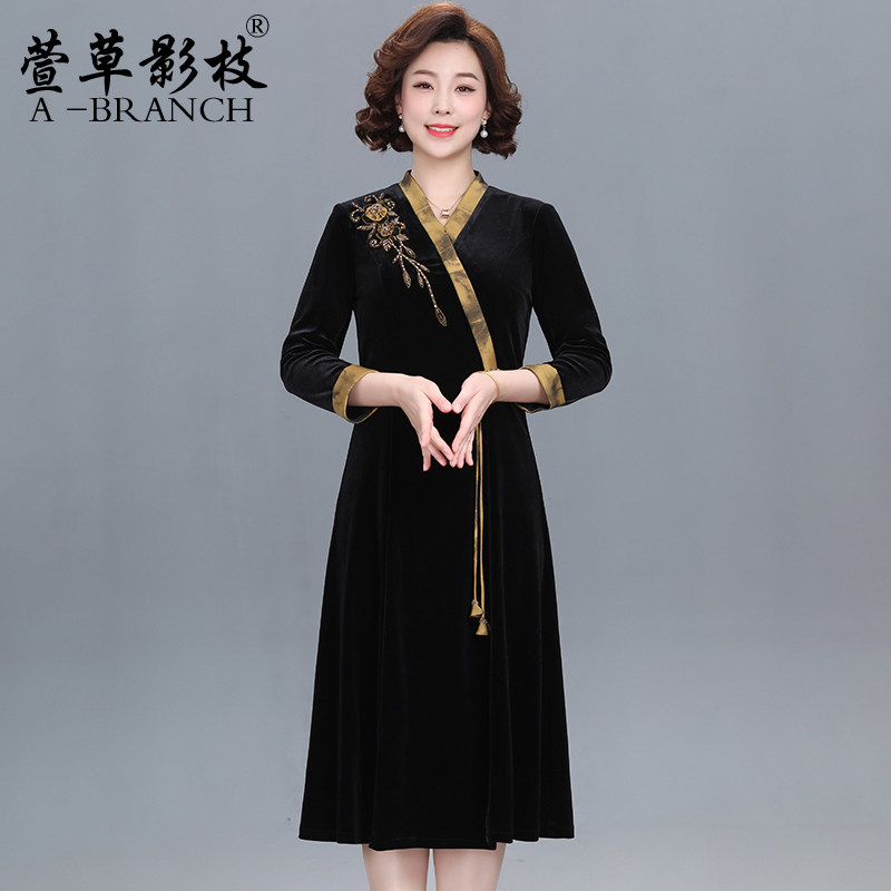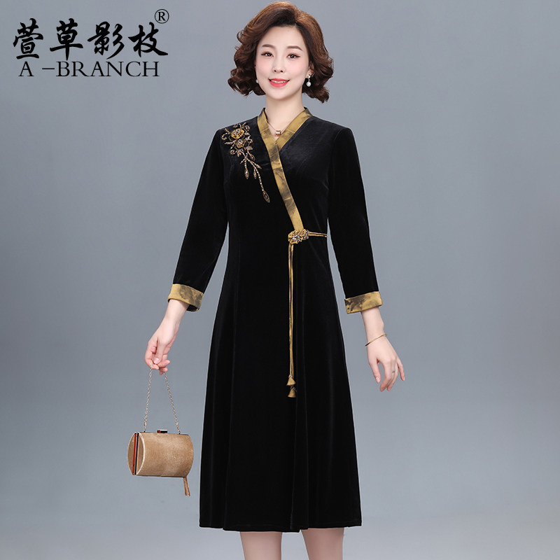 中老年人女装 保暖毛衣服 秋冬加绒加厚一体绒针织旗袍领上衣妈妈装
