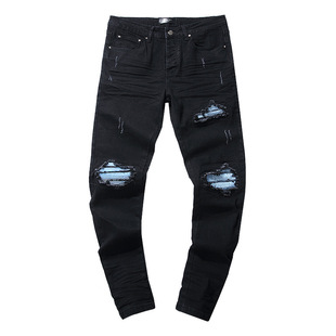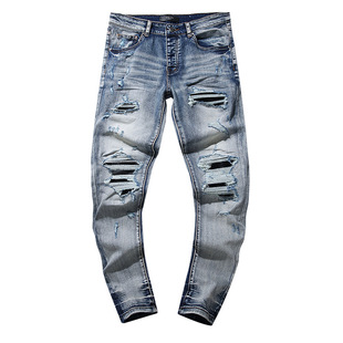保暖高腰弹力显瘦长裤 细闪烫钻 女秋冬新款 直筒牛仔裤 加绒窄版