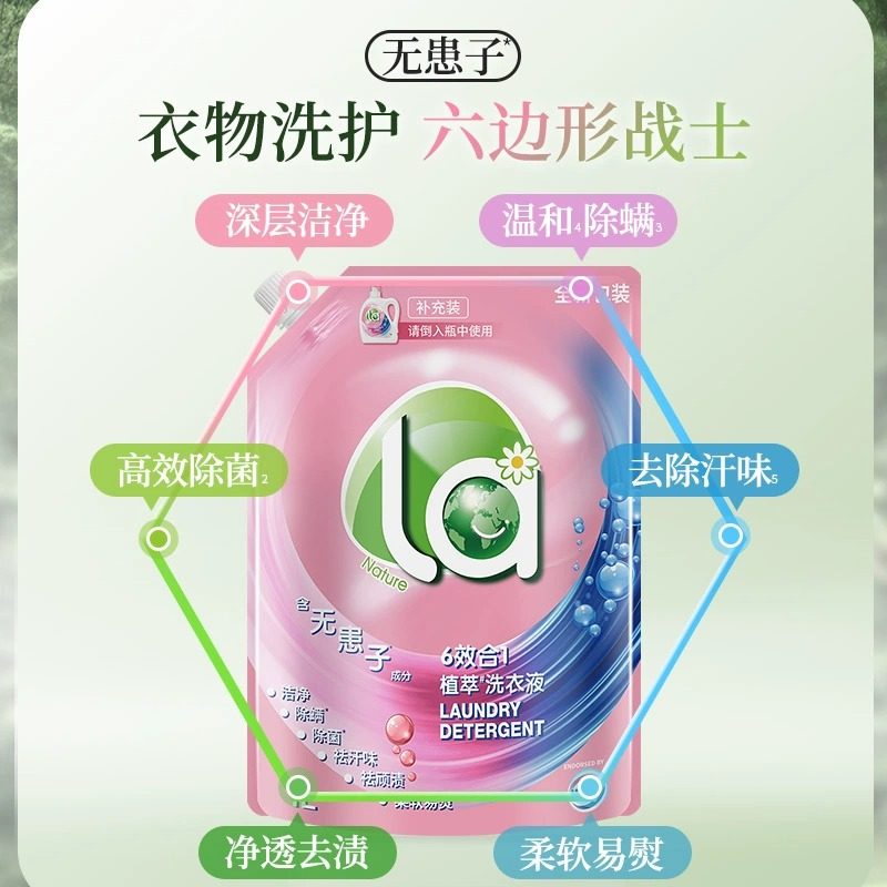 威露士La洗衣液植萃无患子除菌除螨洁净6效合1衣物清洁去污留香