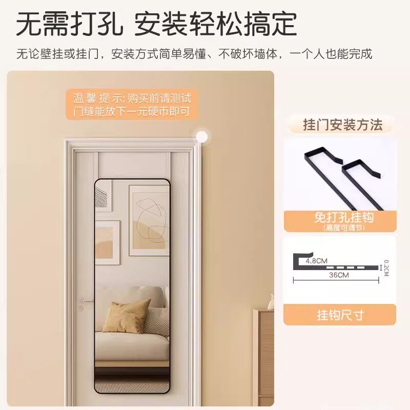 挂门全身镜卧室家用试衣镜子学生出租屋玻璃穿衣镜挂墙镜落地好物