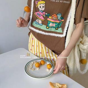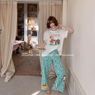 Aimar小熊家家居服2025新款 甜睡之旅家居服薄款 短袖 韩版 长裤 Gill